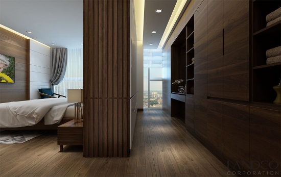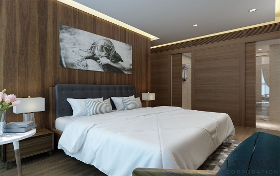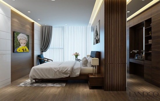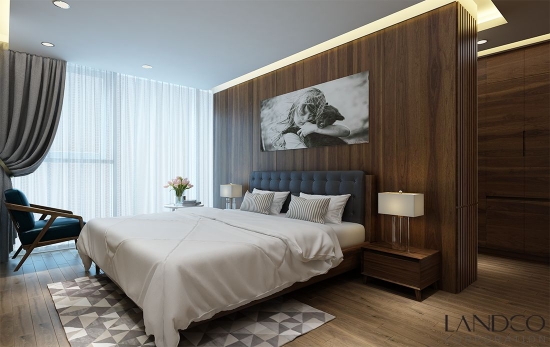 Căn hộ được thiết kế với 3 phòng ngủ, mỗi phòng là một gam màu khác nhau nhưng tất cả được kết hợp hài hoà trên gam nâu trầm ấm áp chủ đạo. Phòng ngủ chính sang trọng với phòng tắm mở, tủ thay đồ lớn liền kề, bộ ghế thư giãn cùng tone màu ghế sofa ngoài phòng khách cho cảm giác tươi mới mỗi sớm mai thức giấc. Các phòng ngủ còn lại sử dụng tone màu đồng bộ ở mỗi phòng. Một phòng với với tone màu sáng của giường ngủ, bàn ghế, tủ đầu giường, drap trải giường cá tính. Tương tự, với không gian phòng ngủ còn lại theo concept trắng và nâu trầm ấm.