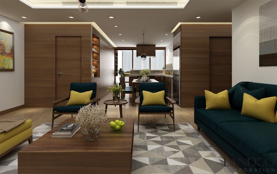 Với gam màu ấm áp và những điểm nhấn cần thiết, Kiến trúc sư của Landco đã tạo nên một không gian sống thanh lịch, sang trọng mà cá tính cho căn hộ Lê Trực trên cao, gần trung tâm thành phố này.