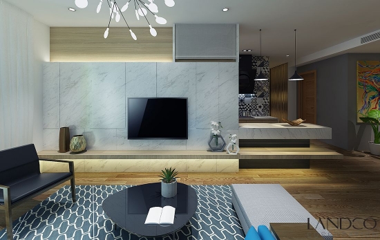 Bằng cách sử dụng nhiều sắc màu tương phản, kết hợp nội thất độc lạ, thật khó để có thể tìm ra sự tẻ nhạt dù là trong từng góc nhỏ ở căn hộ này. Trên phông nền phủ một màu trắng giản đơn thanh lịch, nhà thiết kế của Landco đã thực sự “phù phép” để biến nó thành không gian cực kỳ lôi cuốn.